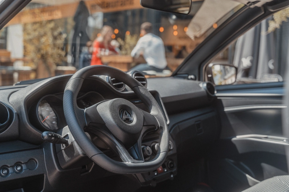 Ablagefach in Türen und Armaturenbrett auf der Fahrerseite, Gepäckraumabdeckung und Gepäckstopp, Haltegriff nur Beifahrer, Handschuhfach mit Münz- und Getränkehalter, Innenbeleuchtung LED (ohne Zeitverzögerung), Kofferraummatte in Stoff, Kopfstützen in Höhe einstellbar, Luftausströmer einstell- und regulierbar mittig, Rückspiegel mit Abblendfunktion, Schalldämmung Motorraum Stufe 1, Sicherheitsgurte Automatik, Sitz Fahrer in Längsrichtung und Rückenlehne einstellbar, Sitze in Stoff, Sonnenblende mit Schminkspiegel